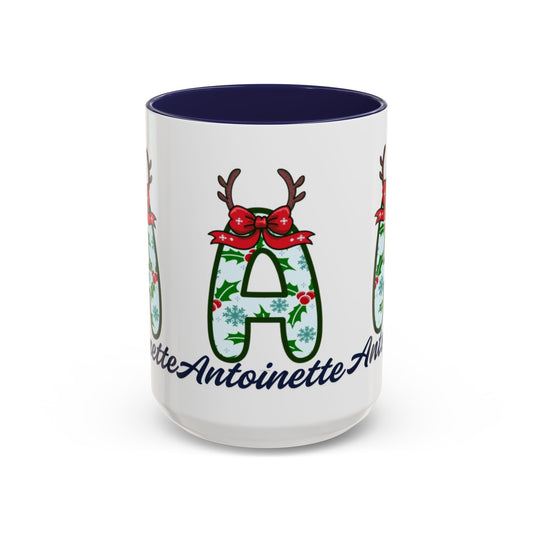 Personalized Christmas Initial A Accent Coffee Mug — Festive Reindeer Monogram (11/15oz)
