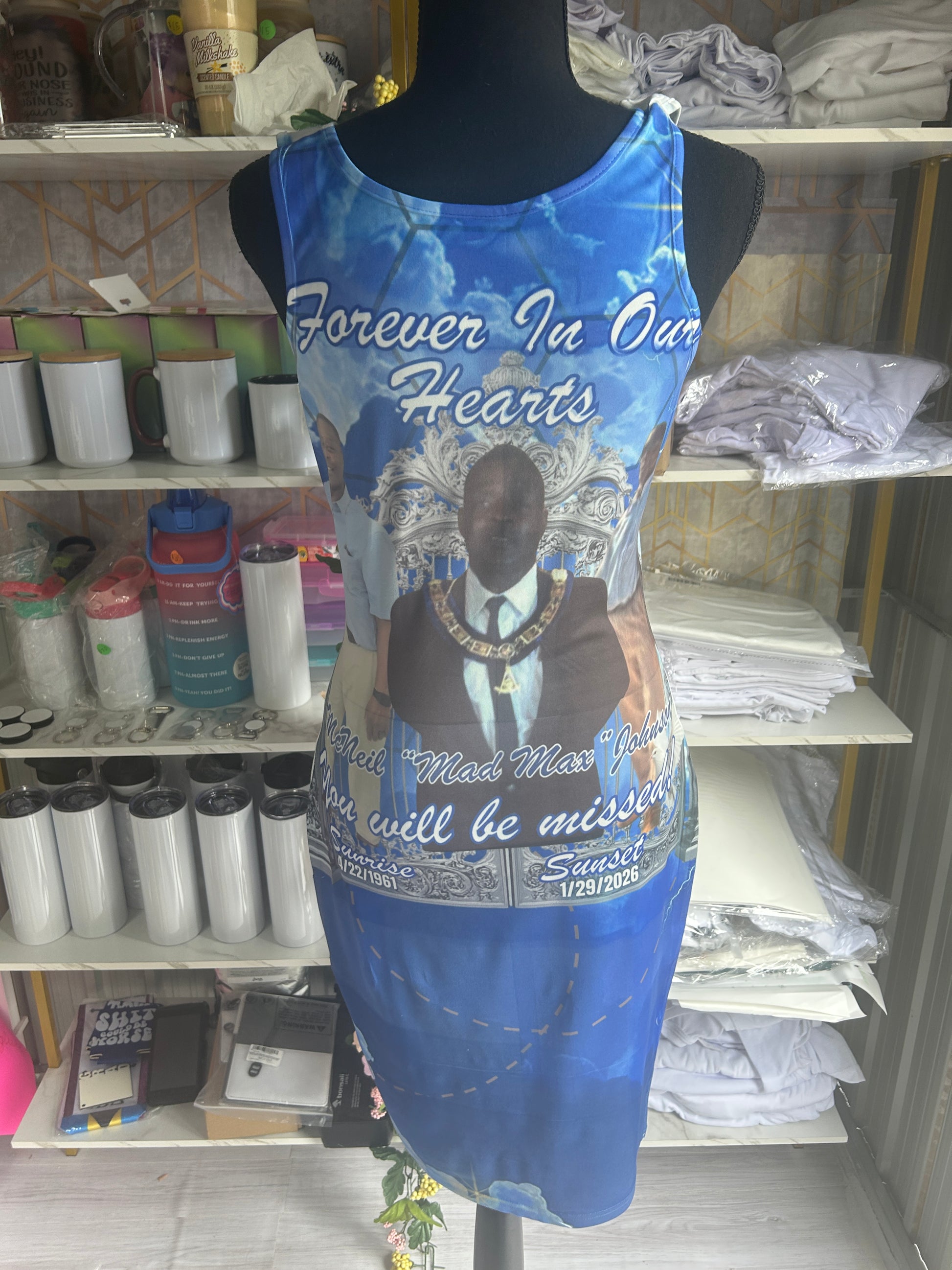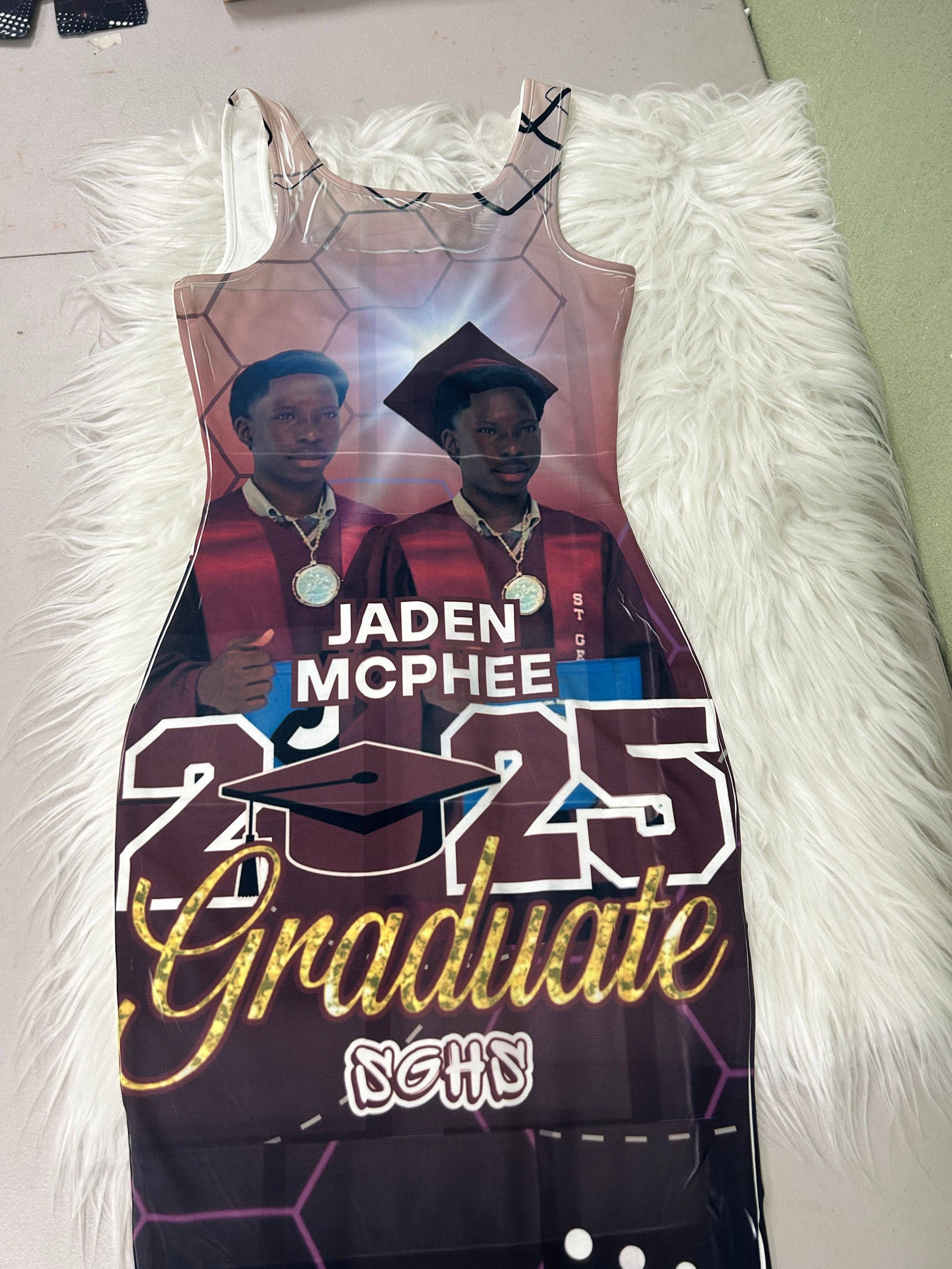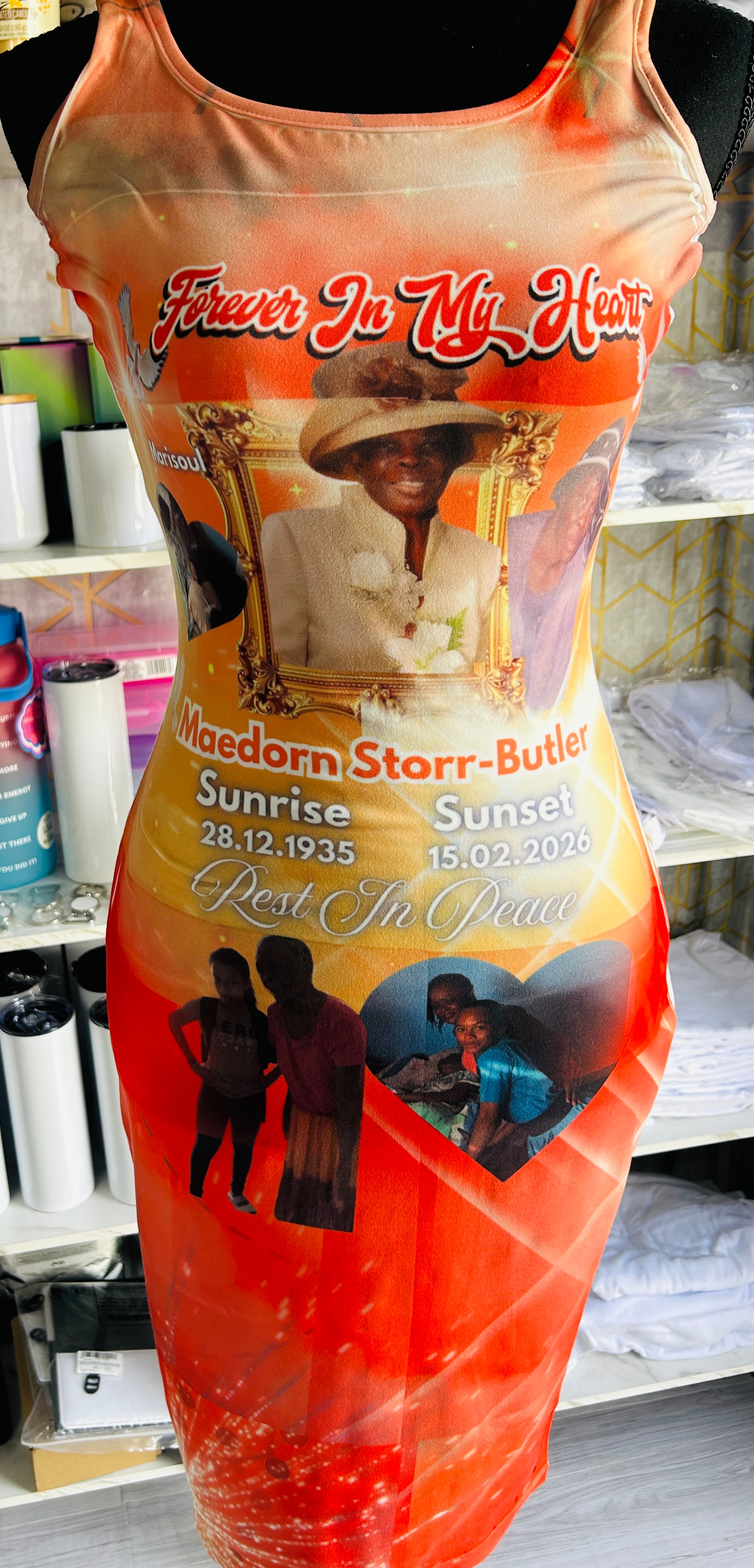 Add photo and short phrase on the dress. Dress texture is polyester ans spandex.